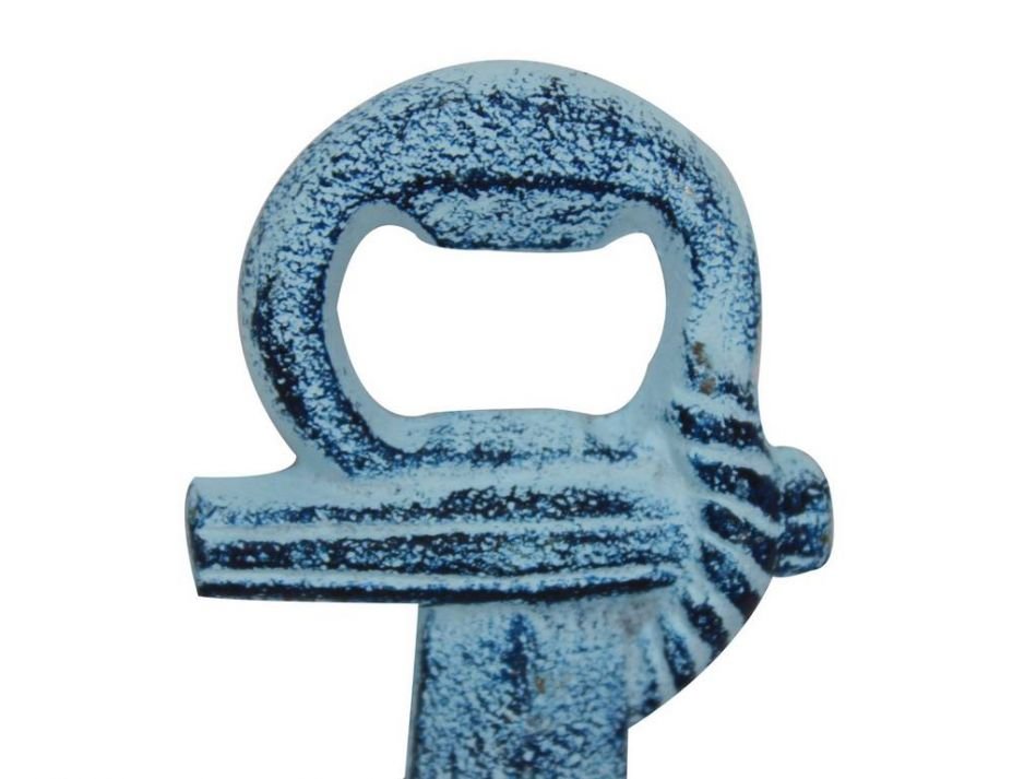 This Rustic Dark Blue Whitewashed Cast Iron Anchor Bottle Opener 5" is the perfect addition to any nautical themed kitchen. Both decorative and reliable, this rustic cast iron bottle opener will open even the most difficult of bottles with ease. This fully functional bottle opener also allows for easy decorative mounting and can be a great gift for the true nautical enthusiast in your life. This whitewashed cast iron bottle opener is perfect for all settings- on the beach, at a picnic or bbq, while tailgating, or wherever you need to quench your thirst.