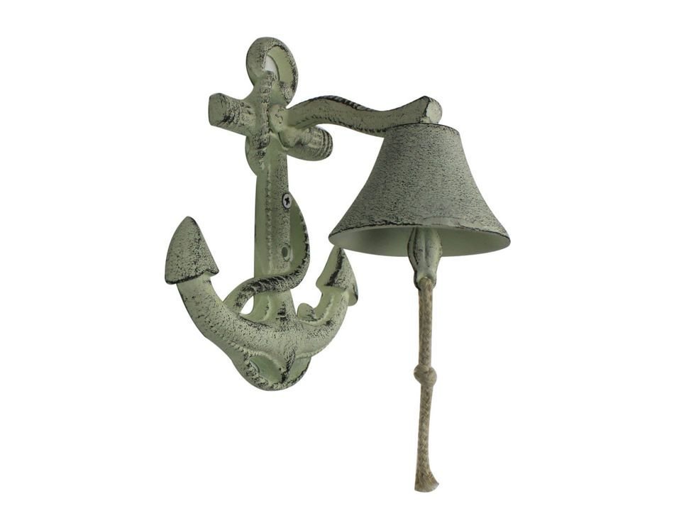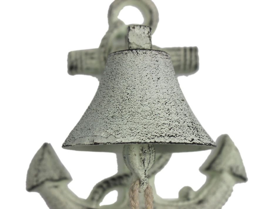 Rustic Whitewashed Cast Iron Wall Mounted Anchor Bell 8"" Rustic Whitewashed Cast Iron Wall Mounted Anchor Bell 8"" Rustic Whitewashed Cast Iron Wall Mounted Anchor Bell 8""