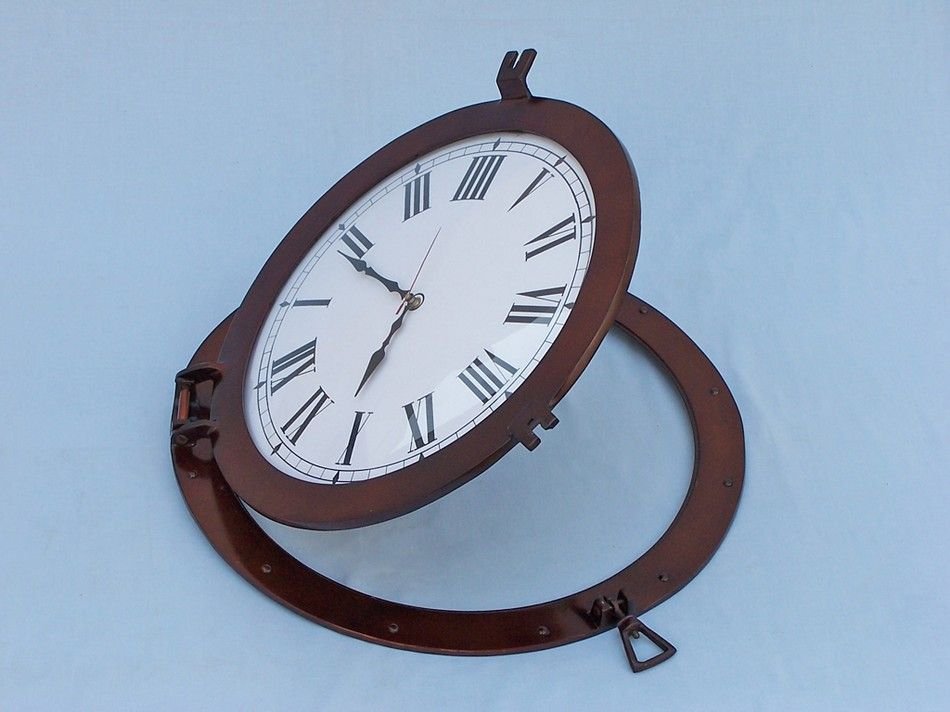 Antique Copper Deluxe Class Porthole Clock 20"" Antique Copper Deluxe Class Porthole Clock 20"" Antique Copper Deluxe Class Porthole Clock 20""