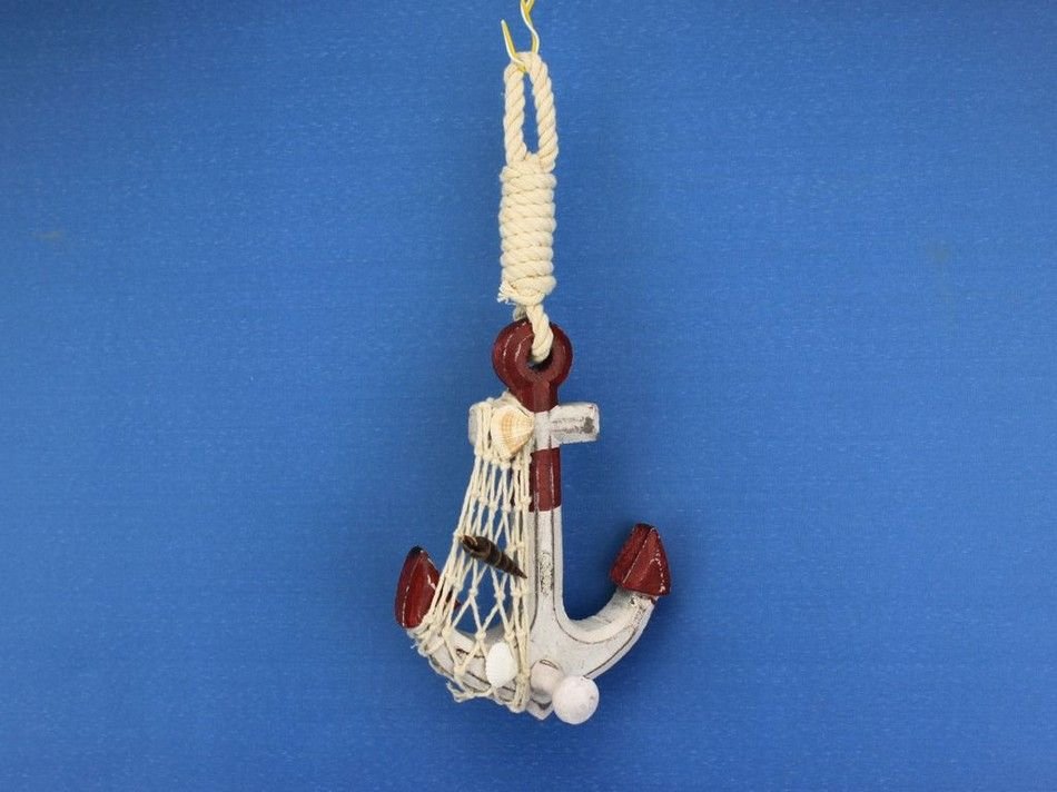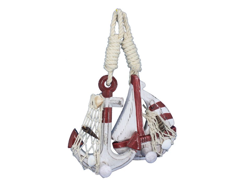 Wooden Rustic Red Decorative Sailboat/Anchor Wall Accent w/ Hook Set 6""
