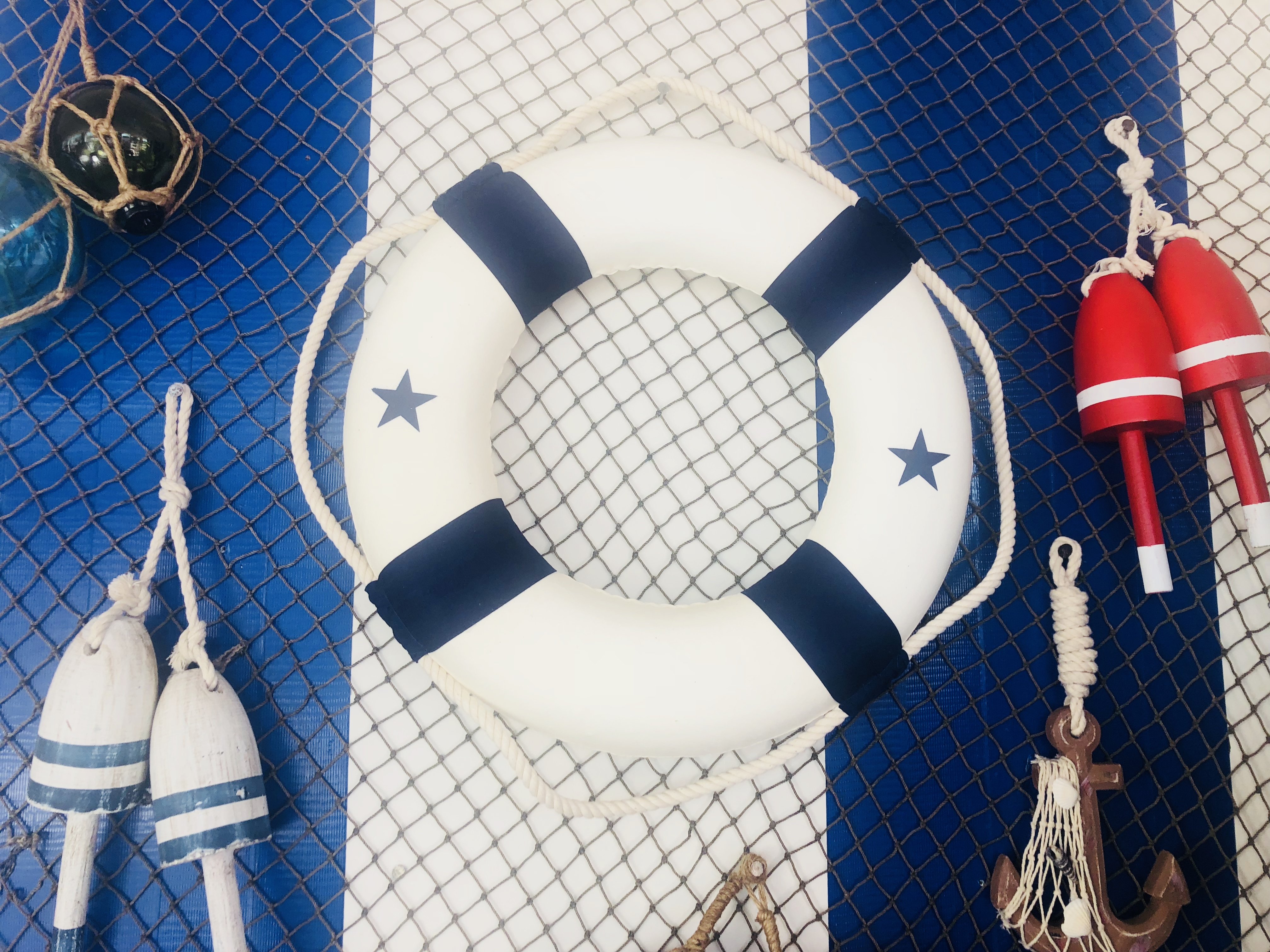 The Blue and White new 15" decorative lifering is the perfect nautical accent to add to your home, office, or pool area. Blue canvas straps accent the white lifering displaying nautical stars in blue, and will make guests and family feel at home and comfortable. Lightweight styrofoam construction makes the medium 15" lifering easy to hang anywhere so you can bring that nautical ocean feel into the comfort of your own home, office, nautical clubhouse, or poolhouse.