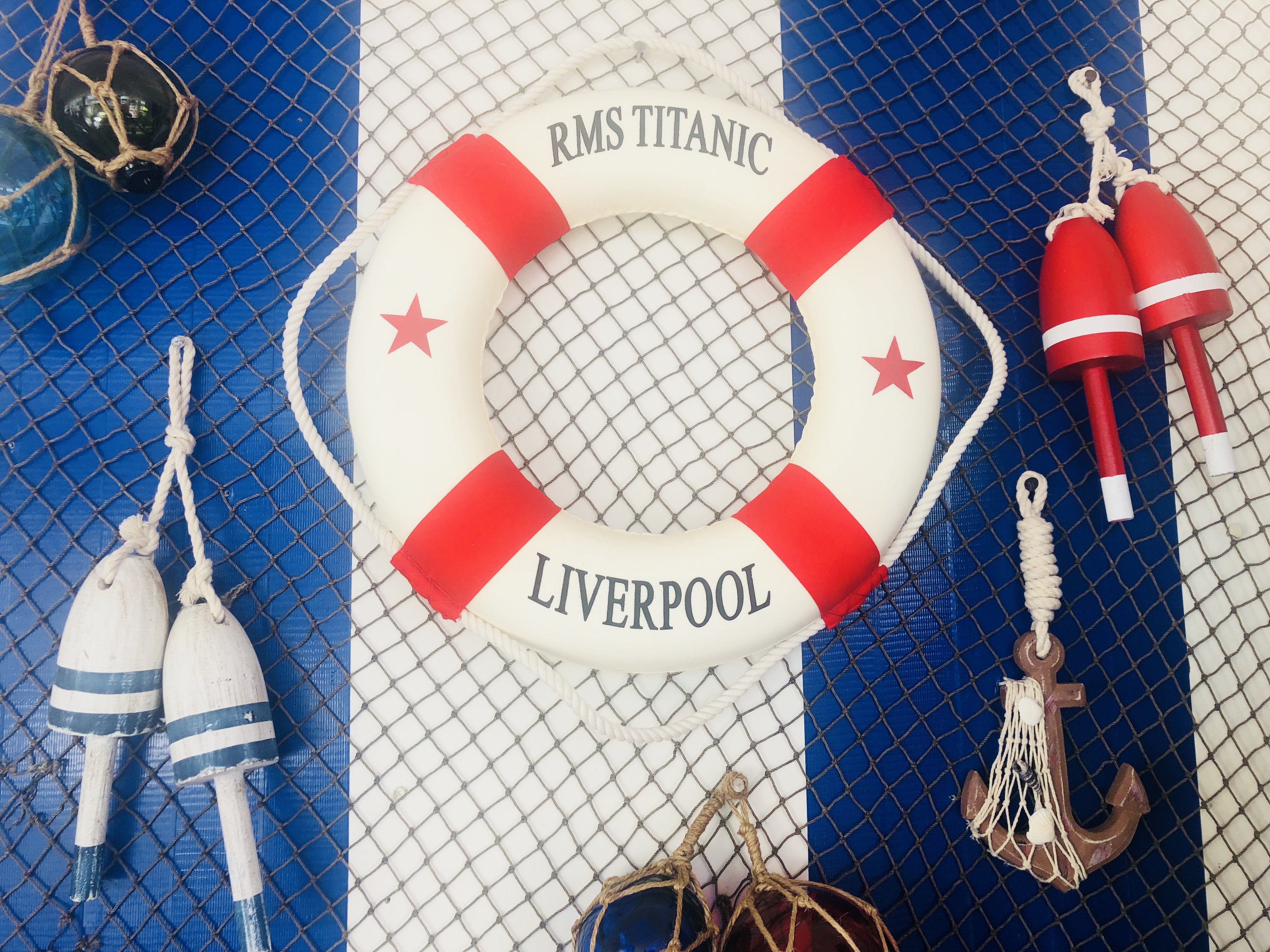 The RMS Titanic was the largest ship to sail the ocean and will forever be remembered for it's maiden voyage mishap. Bring a little flare and historical value into your home, office, or boat with the RMS Titanic decorative lifering. A white lifering with red hand stitched straps, and the script RMS Titanic, and Liverpool are true to that which you would have found aboard the Titanic in it's day. The RMS Titanic lifering captures the seagoing experience and can provide a calming nautical feel to any room that may need it.