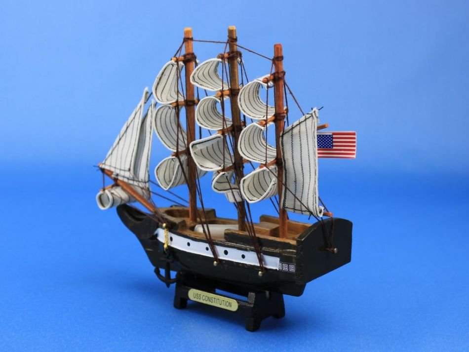 Named by George Washington, and launched in 1797, the USS Constitution is the world's oldest commissioned sailing vessel. Recreated here in stunning detail, this famed ship model makes an excellent gift to any child or nautical enthusiast. Both historically intriguing and handsomely crafted, enjoy the warm nautical flare this model brings to any room of the home or office. Handcrafted from 100% solid wood, with a metal nameplate, this 7"model adds a touch of classic American sailing decor to any room it graces.
