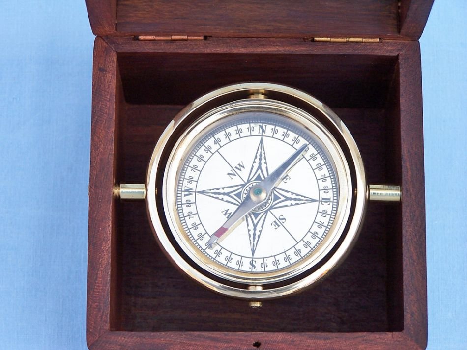 Home > Solid Brass Lifeboat Compass w/ Rosewood Box 5""