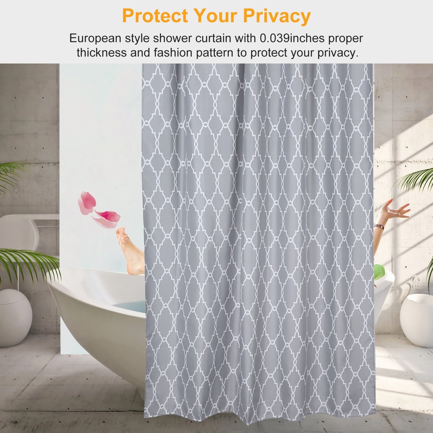 **CHIC STYLE TO PROTECT YOUR PRIVACY*:European style shower curtain with .039inches proper thickness and fashion pattern to protect your privacy. An optimal decoration for your bathroom and recreational vehicle.