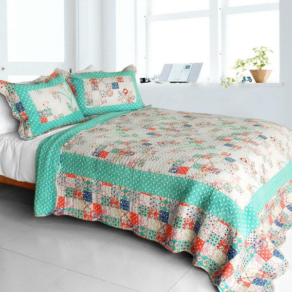 [Start My Youth] Cotton 3PC Vermicelli-Quilted Striped Patchwork Quilt Set (Full/Queen Size) [Start My Youth] Cotton 3PC Vermicelli-Quilted Striped Patchwork Quilt Set (Full/Queen Size)