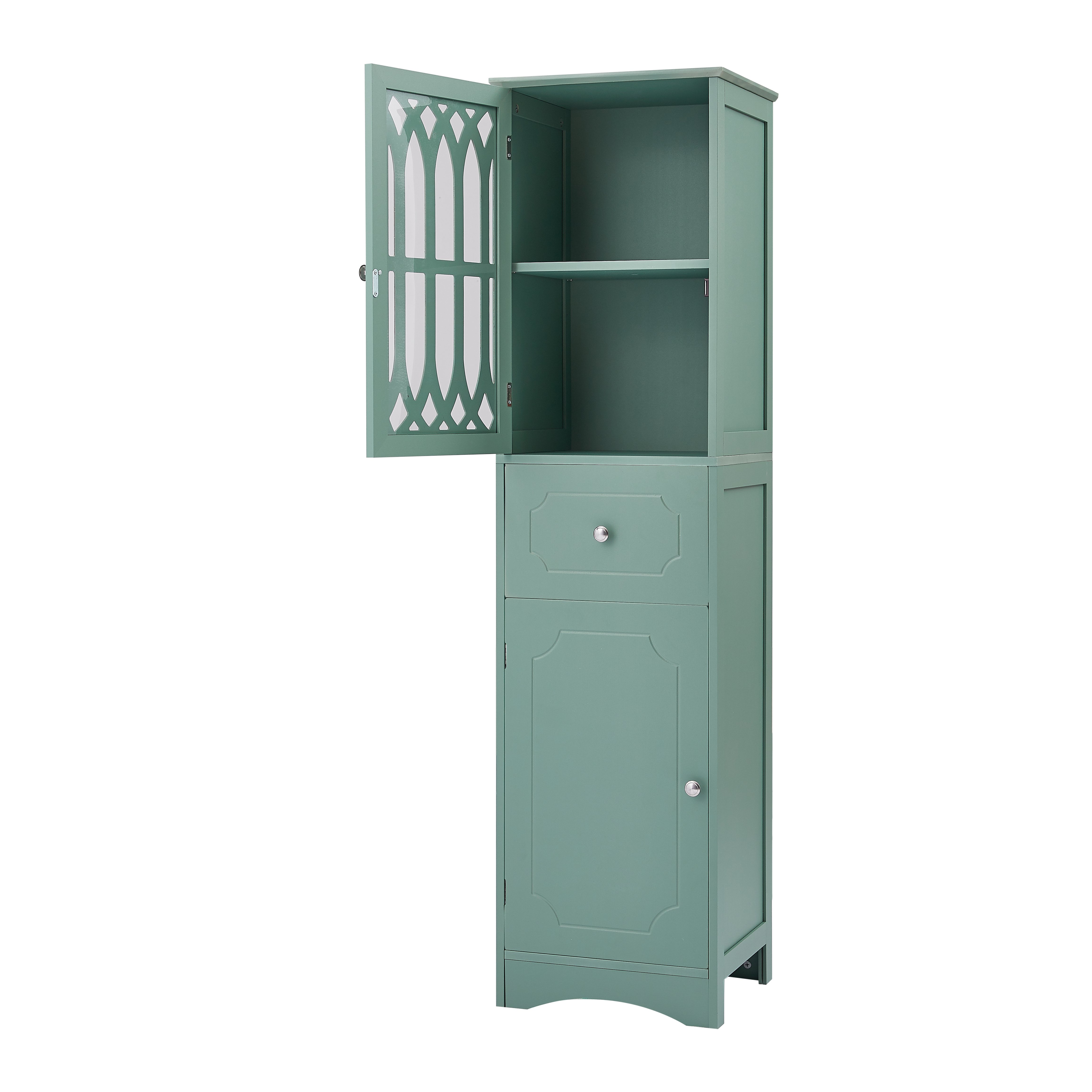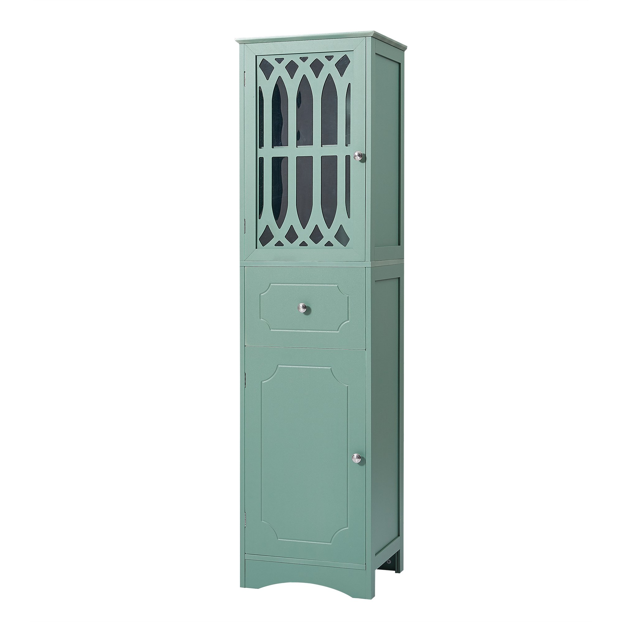 [Ample Storage]: This bathroom cabinet has an above enclosed cabinet with an acrylic panel door, and one drawer and an another cabinet with door below, which can totally satisfy your daily storage needs. Your can put your towels, shampoos, and other bathroom essentials in it.