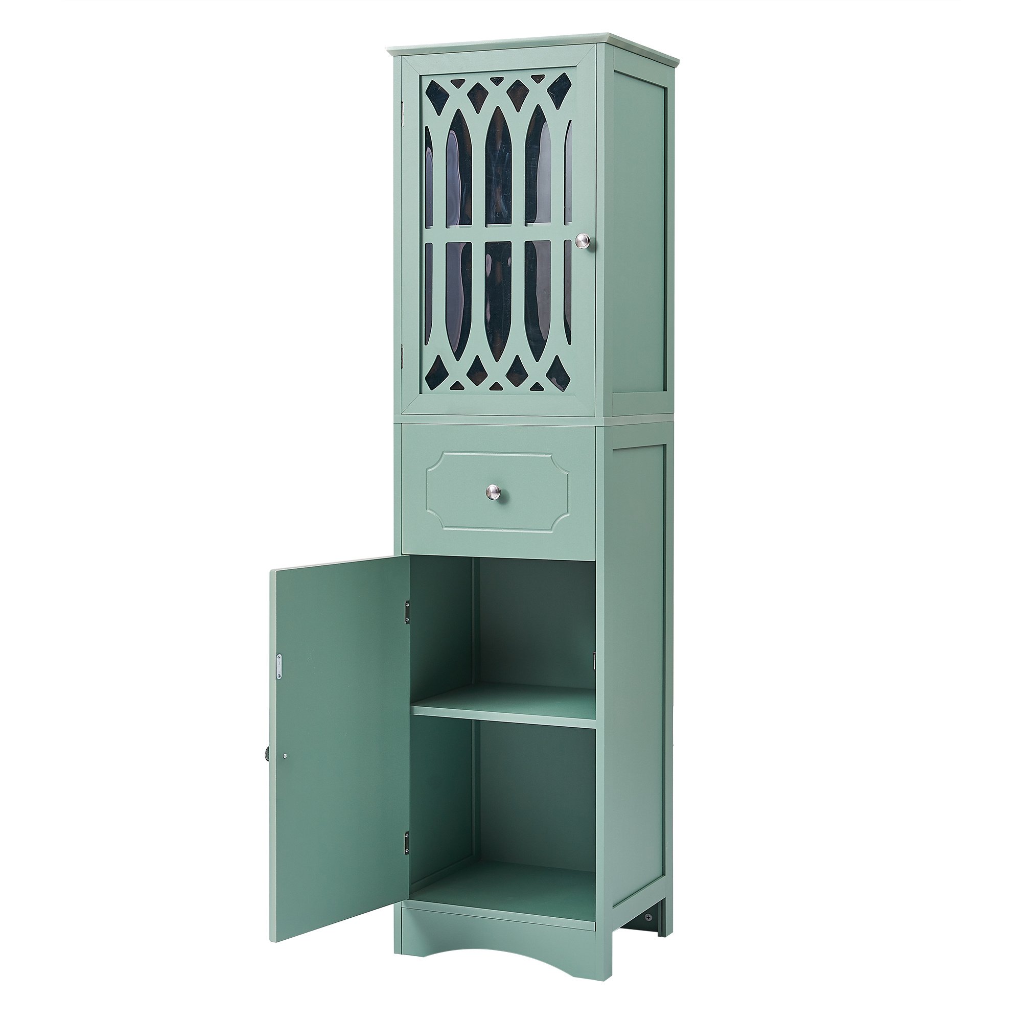 [Space Saver]: With a slim and compact body, this cabinet will not occupy much room. Just put it in a corner and then you can get a space-saving bathroom furniture. This cabinet also equips with an anti-tip kit so can to protect it from tipping.