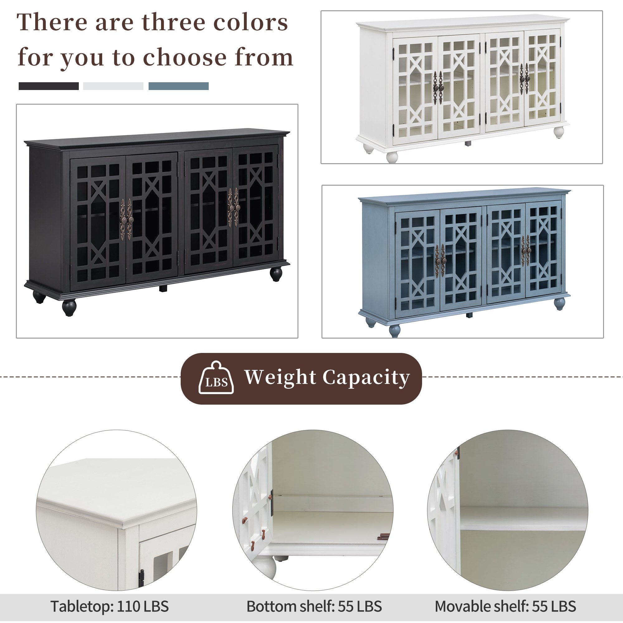 Four table legs and middle support legs ensure the stability and durability of the cabinet. The whole cabinet has a net weight of 117 lbs; tabletop can bear 110 lbs; and shelf can bear 55 lbs; which ensures the safety and stability while providing sufficient storage space.