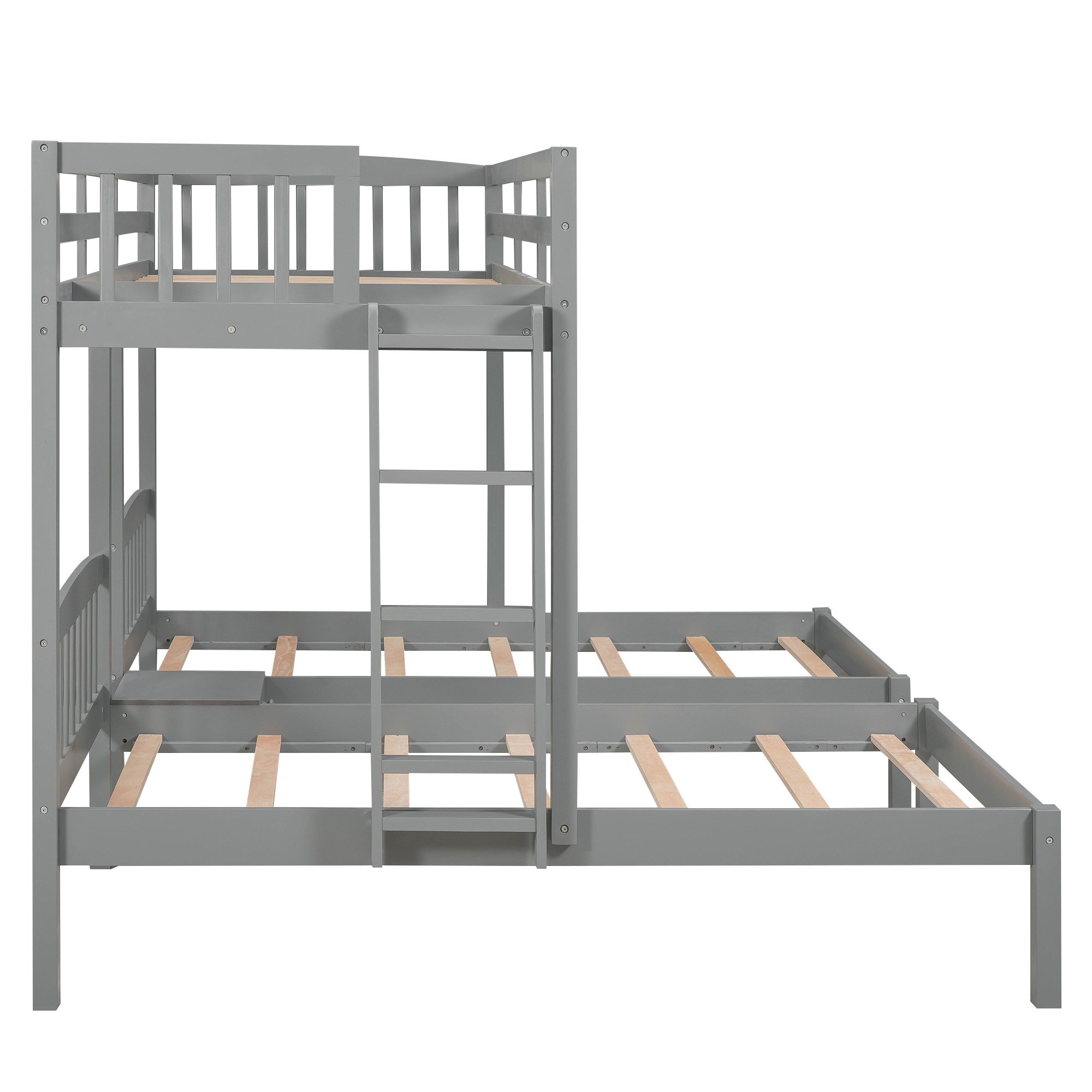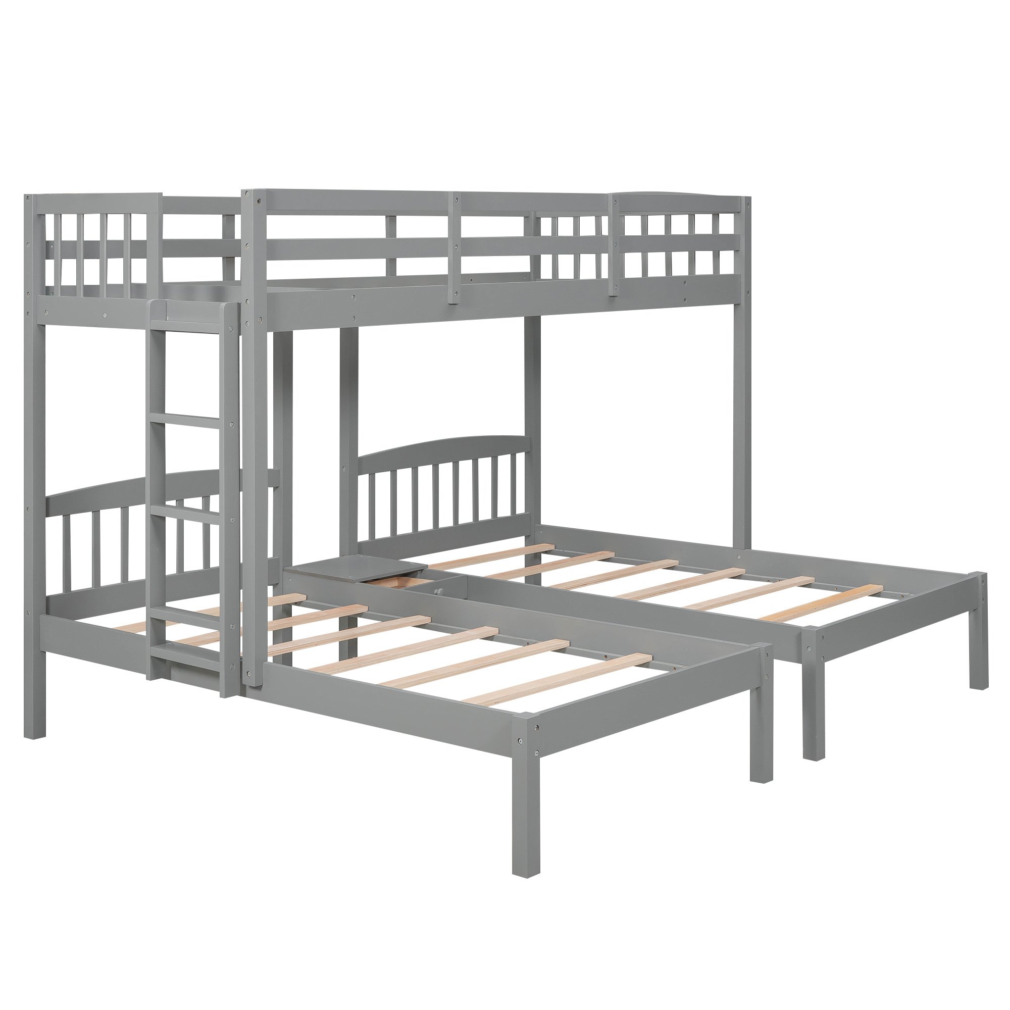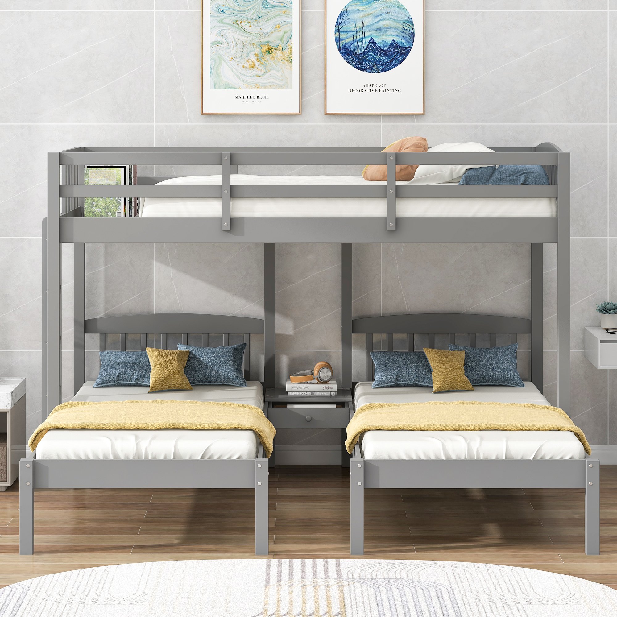 Twin over Twin & Twin Bunk Bed with Built-in Middle Drawer