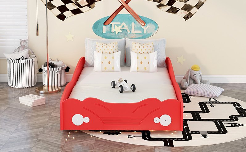 2.[Solid Construction] The twin size car bed is constructed with a sturdy pine wood and MDF frame that features a novel look for enhanced stability and durability.