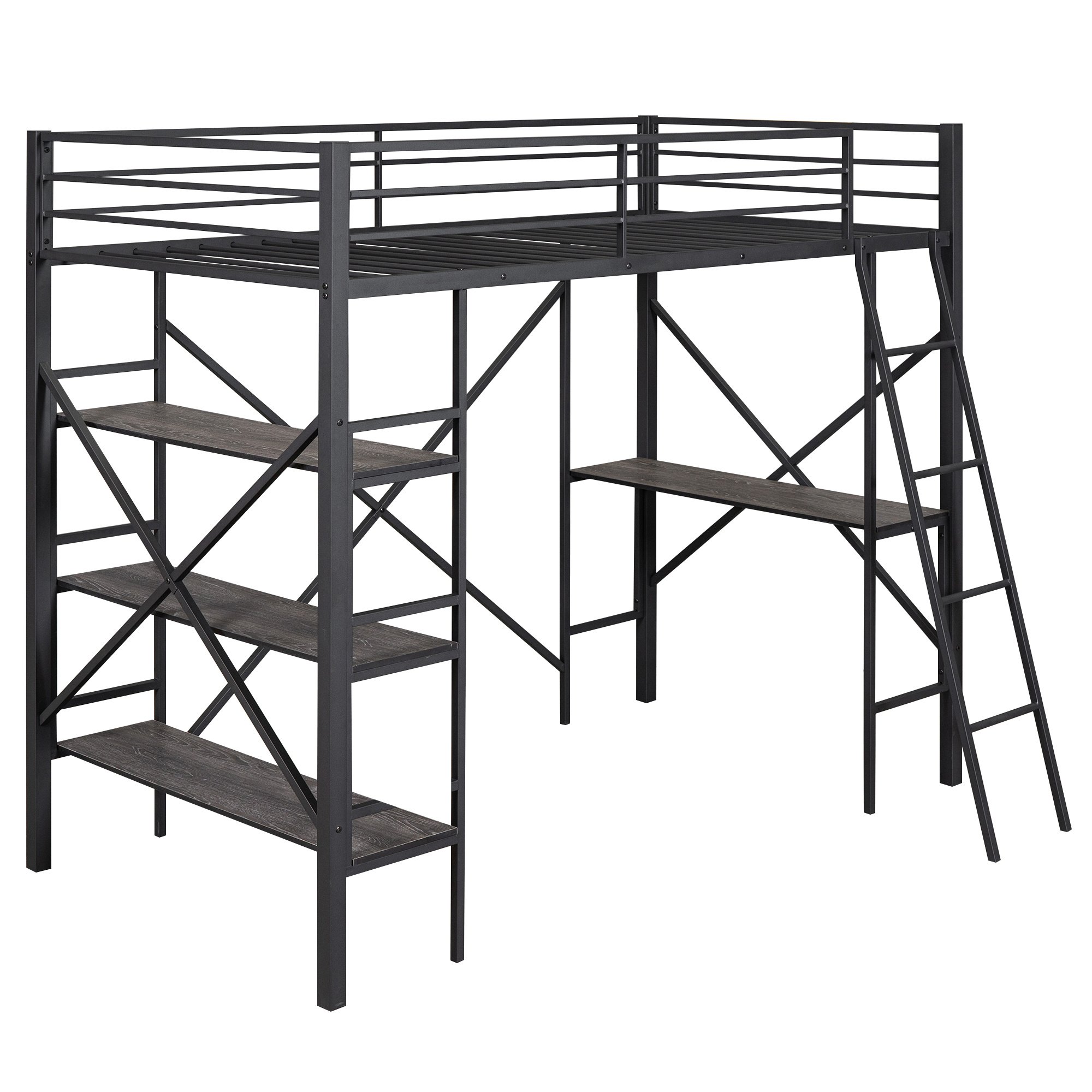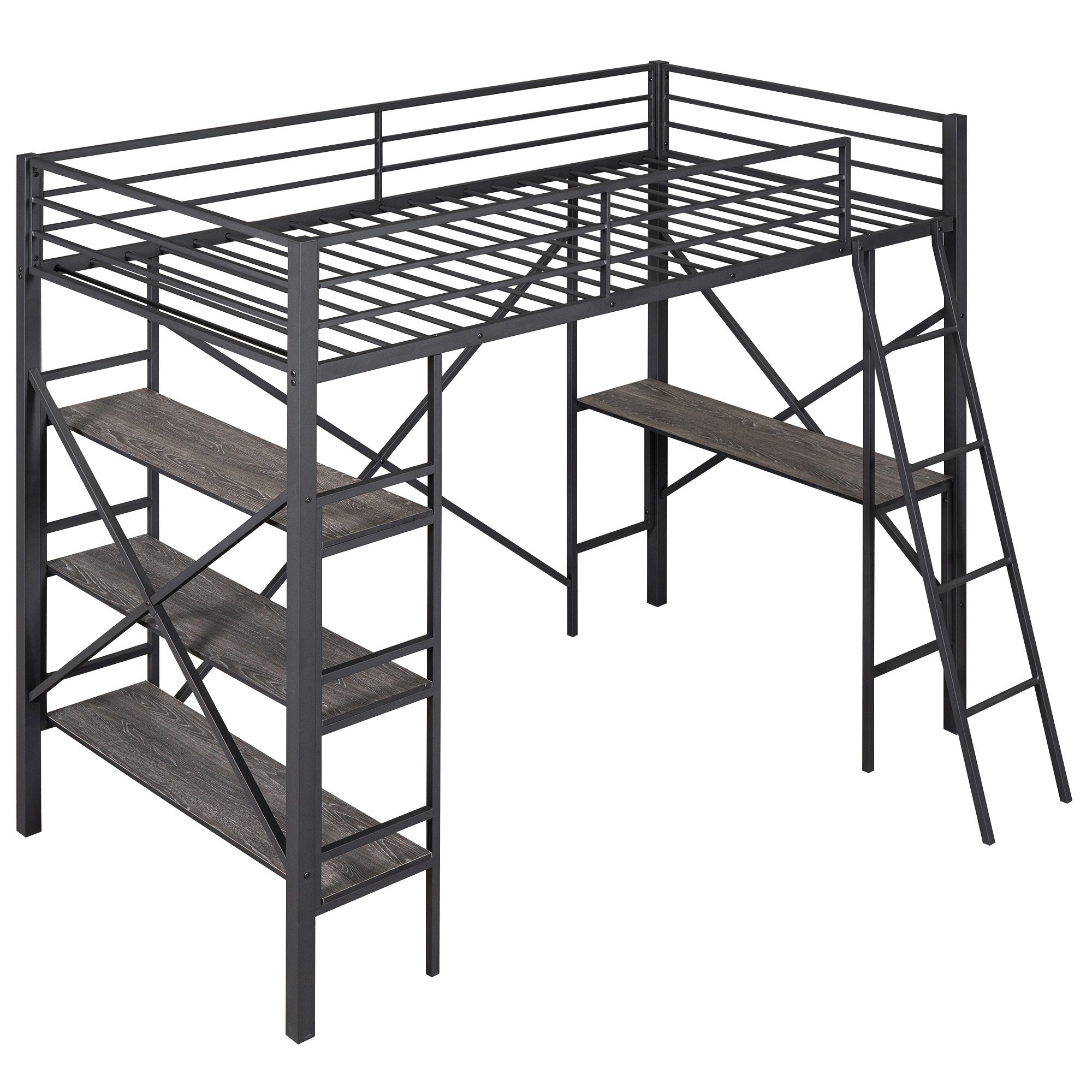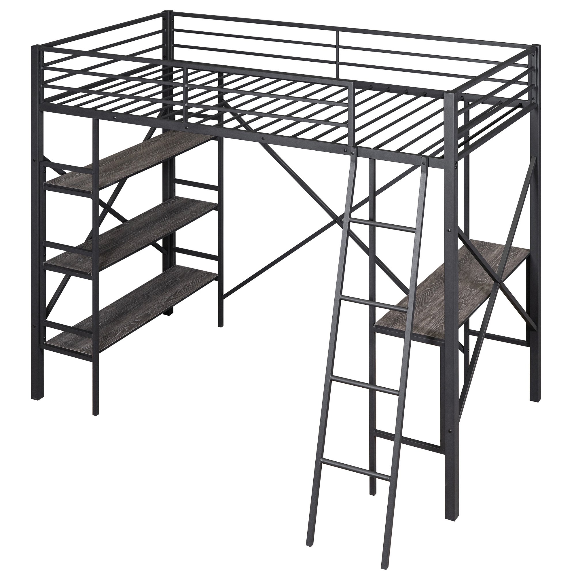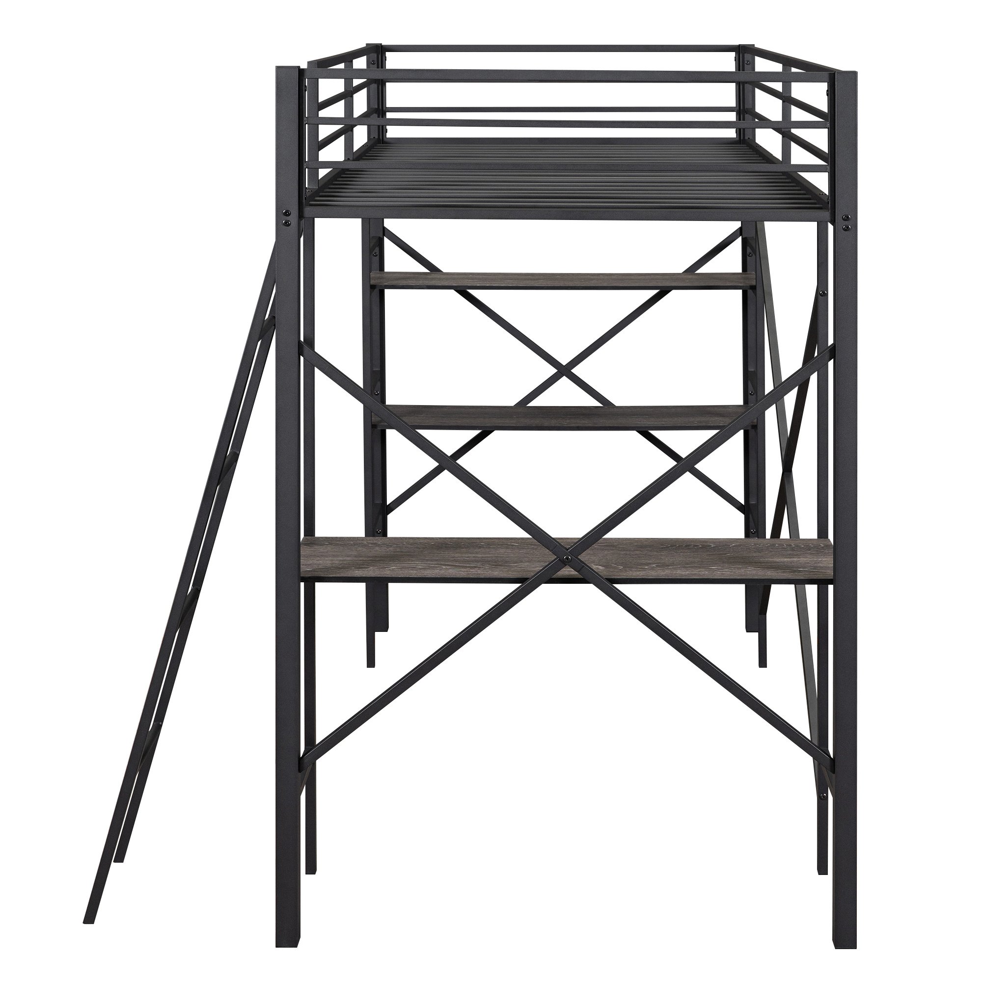 Home > Twin Size Metal Loft Bed with Shelves and Desk