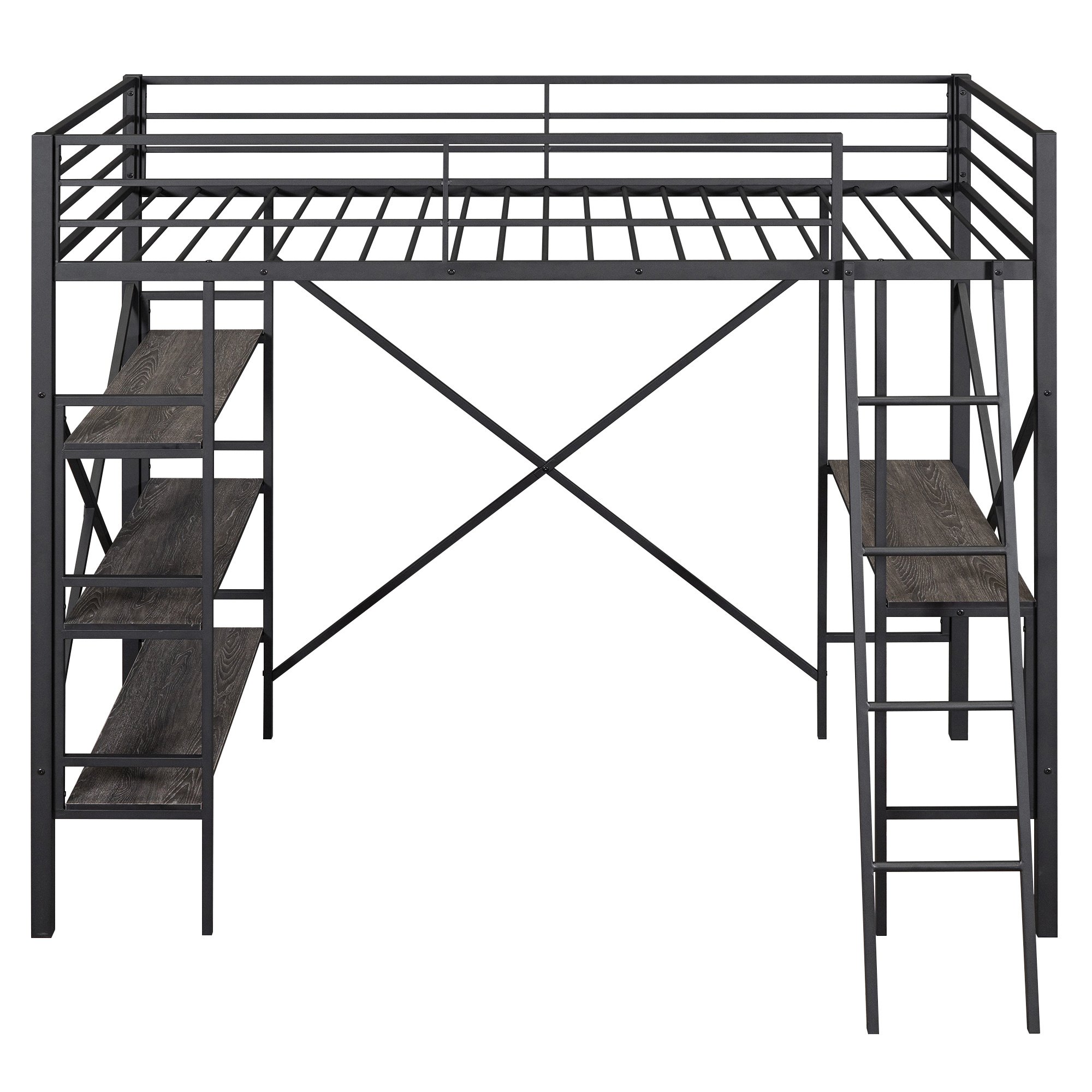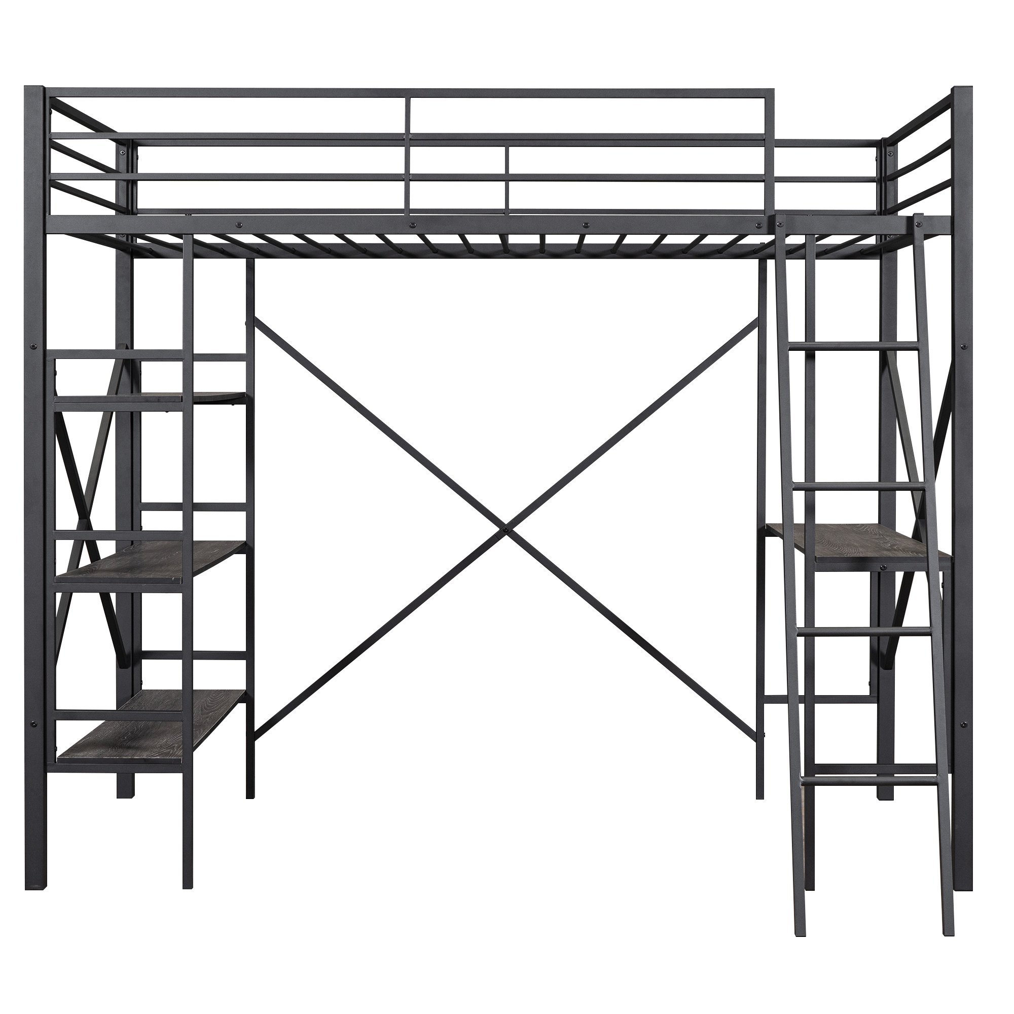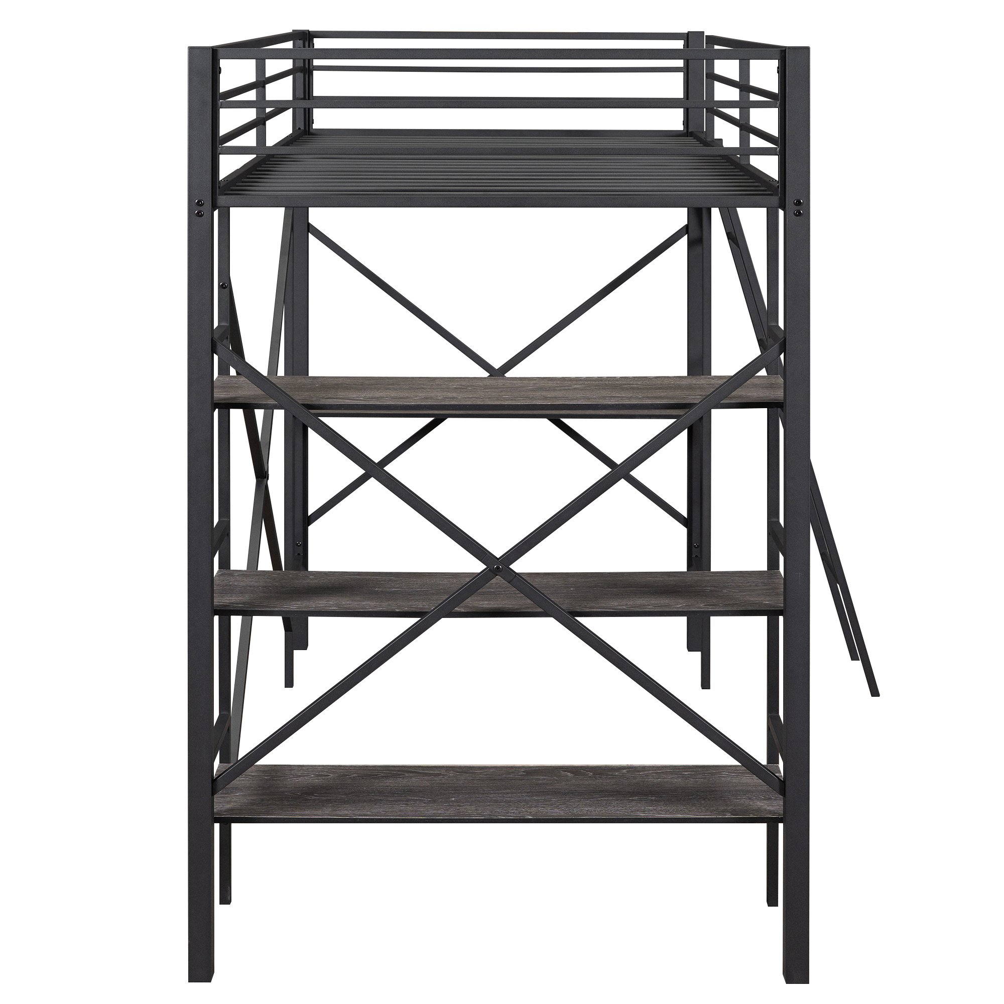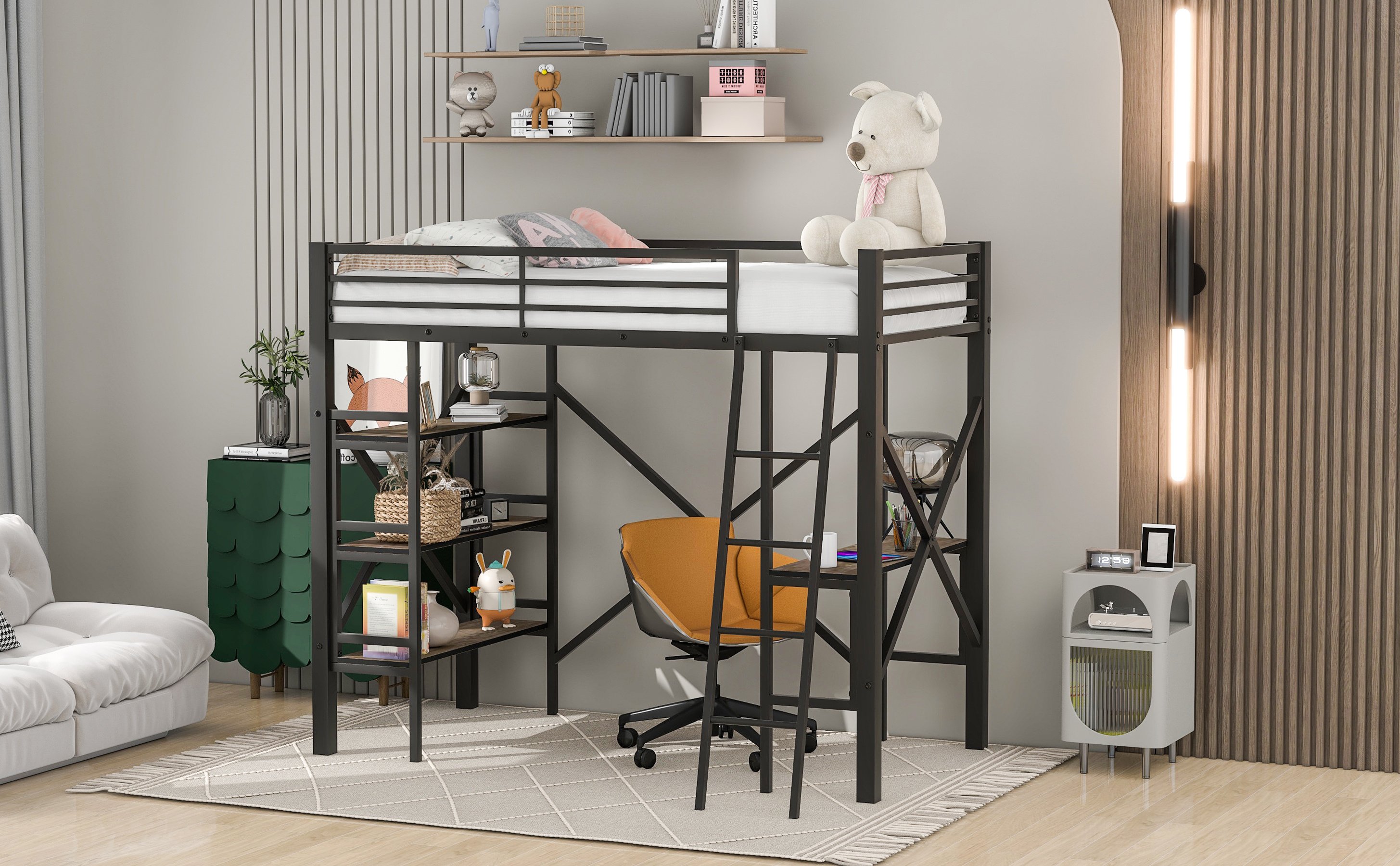 Home > Twin Size Metal Loft Bed with Shelves and Desk