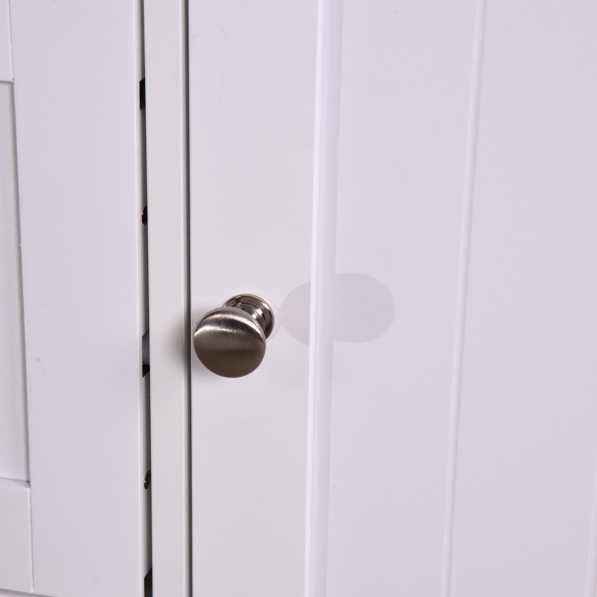 EVERYTHING UNDER CONTROL: Need a towel after your shower? Toilet paper ran out? Now you don’t need to run to another room to get them; as this storage cabinet with a large capacity can stow all your necessary supplies in the bathroomSEE THE BEAUTY IN SIMPLICITY: You can't deny that all-white cabinets bring a fresh and calm feeling to your bathroom; the clean lines and simple silhouette add elegance and can easily match country styleSTABILITY BEFORE EVERYTHING: Crafted of high-strength fiberboard (P2 grade) and delicate details that enhance the stability; this cabinet promises a long service life; an anti-tip kit is included so you don’t need to worry about kids tipping it overUP TO YOU: How high is the space for storage? You decide. An adjustable shelf design is in the cabinet behind the door; and 3 heights are available to fit your varying needs ranging from short paper rolls to high lotions100% SATISFACTION GUARANTEE: We provides professional customer service before and after purchase; don't wait any longer and enjoy it now!